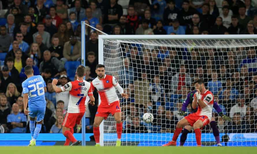 Match on Tuesday September 21 2021. Manchester City survived an early scare to keep their bid for an unprecedented fifth-straight Carabao Cup success on track with a thumping 6-1 win over Wycombe Wanderers.